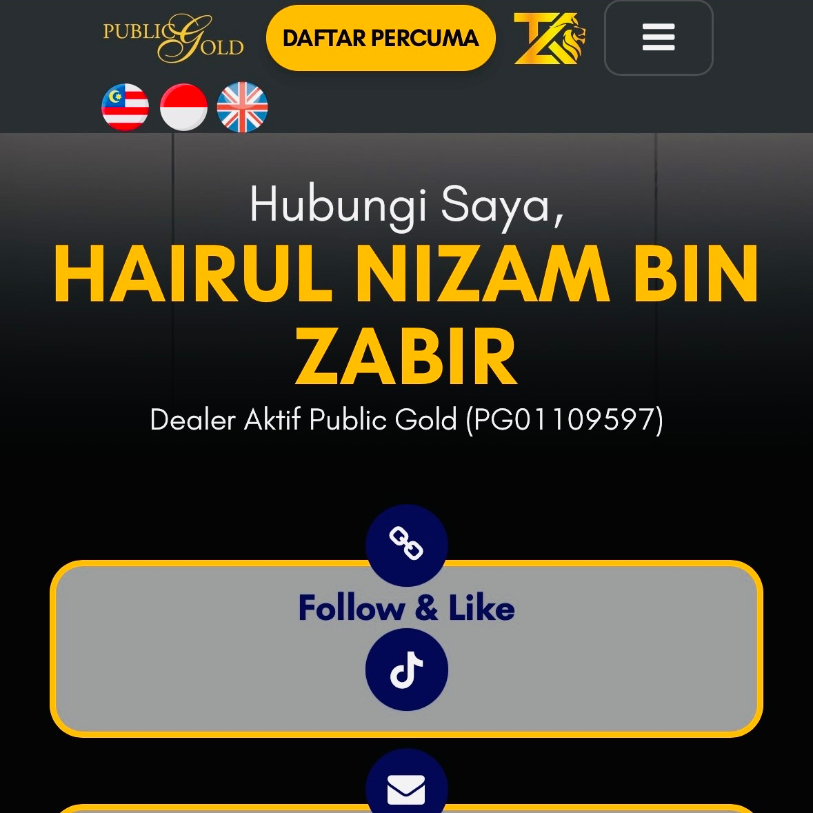 Merupakan dealer terlatih dalam kalangan TKL EMPIRE iaitu rangkaian yang memiliki penyimpan emas seluruh dunia.